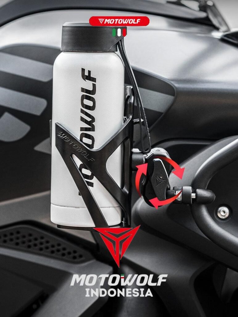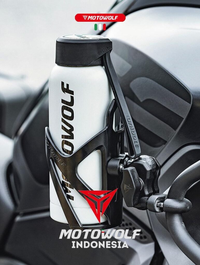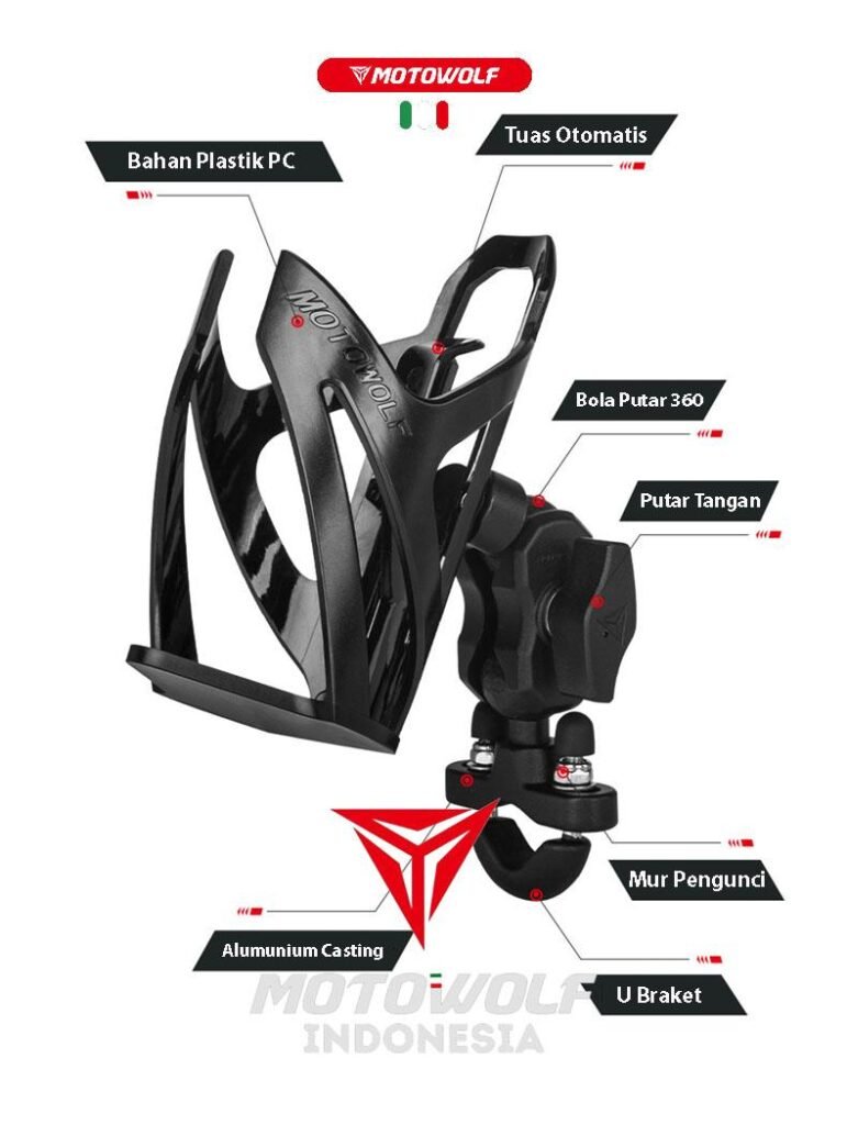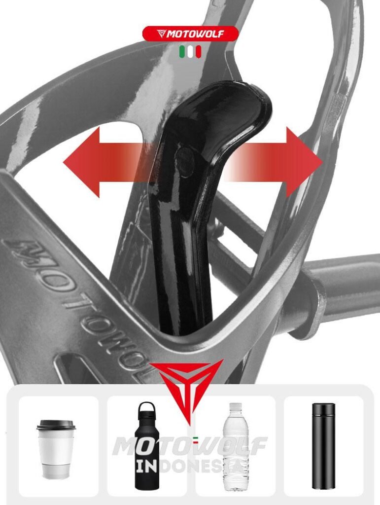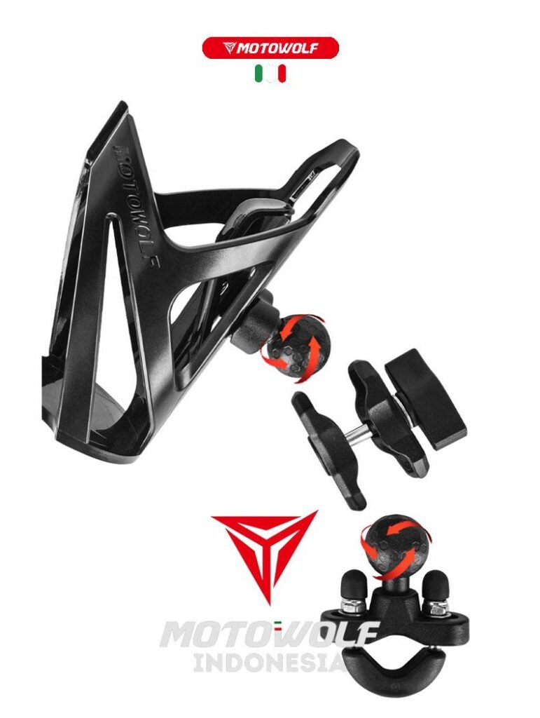 Holder botol minum ini bersifat universal, dapat dipasang pada motor, sepeda, ATV, ataupun mobil offroad.
