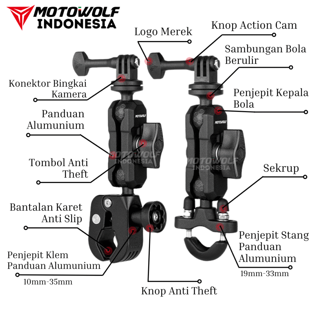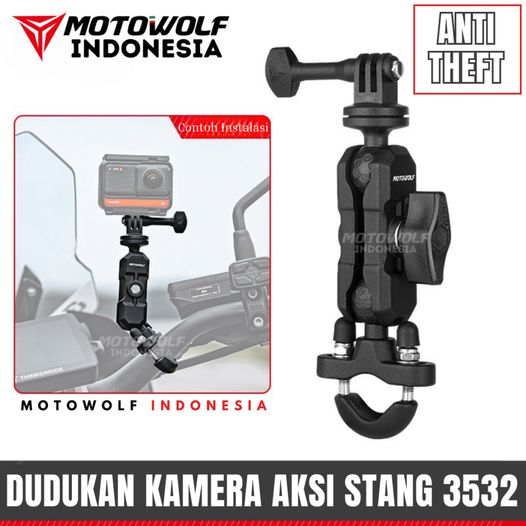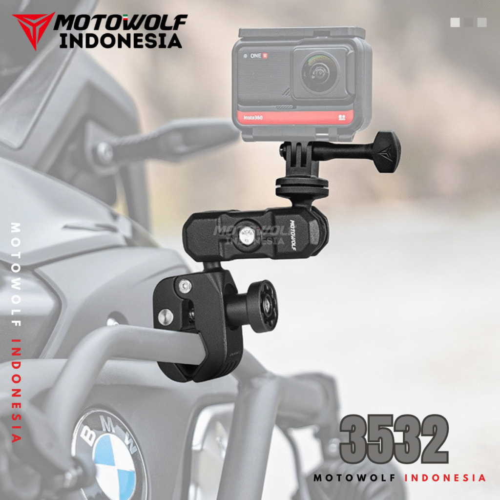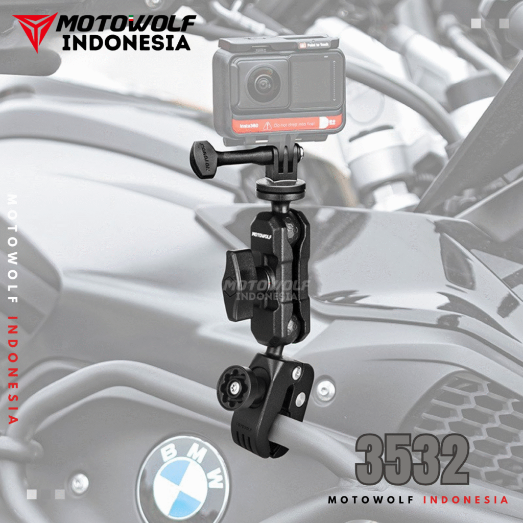 Braket dudukan action cam Motowolf Aluminium untuk pemasangan di motor / sepeda / atv / motor listrik model 3532.