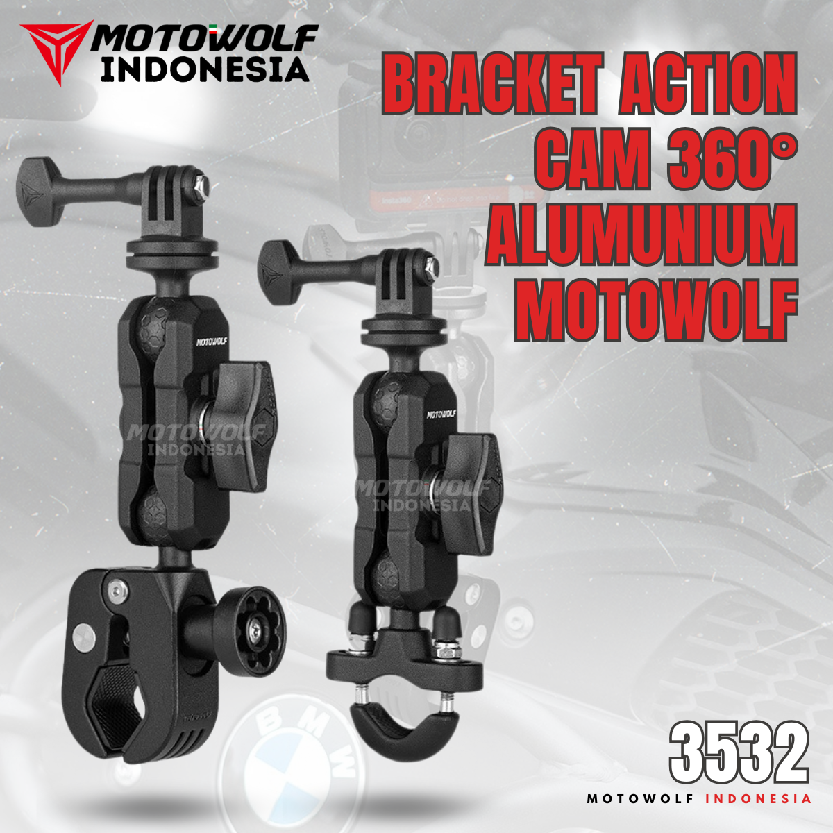 Braket dudukan action cam Motowolf Aluminium untuk pemasangan di motor / sepeda / […]