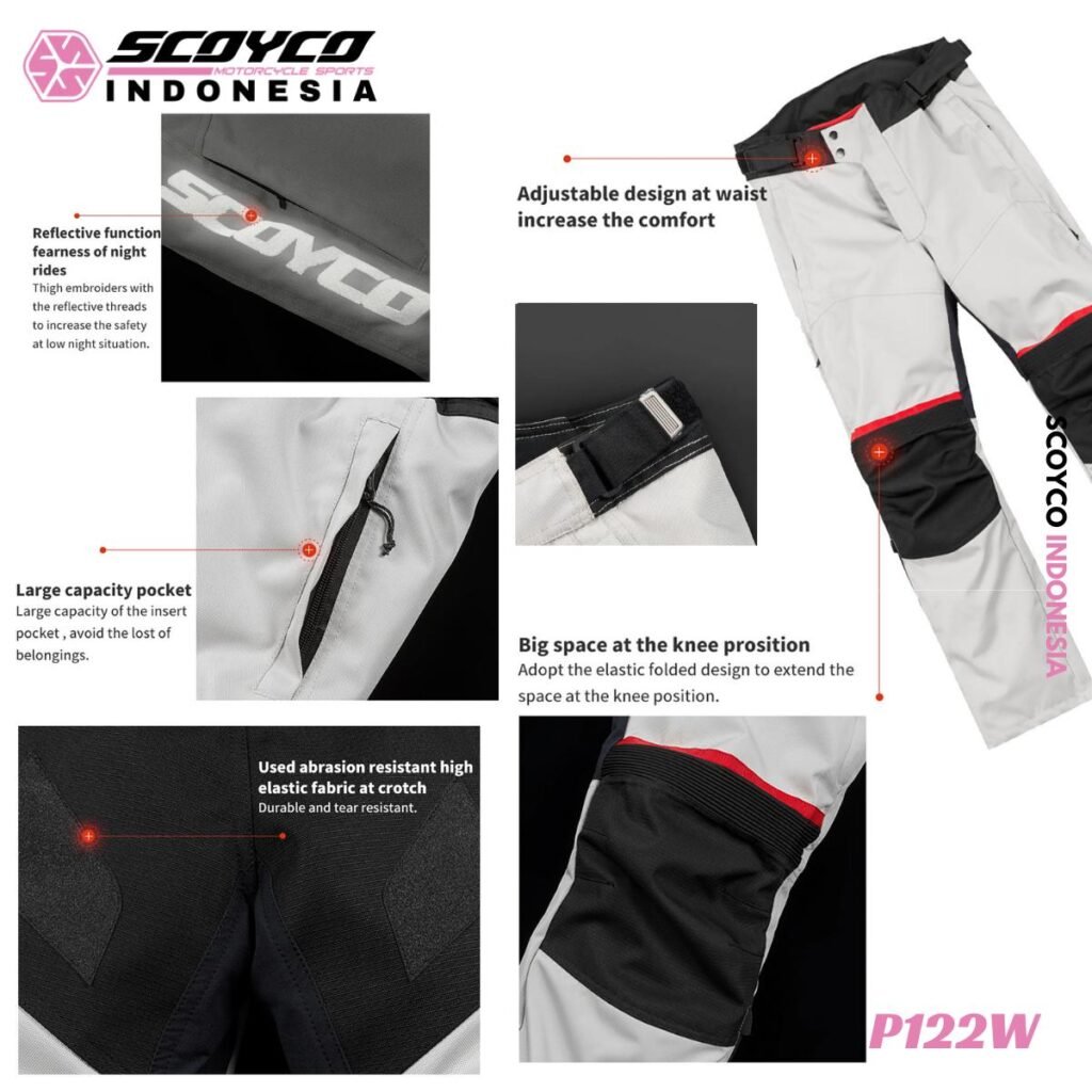 Celana yang dibuat untuk memenuhi kebutuhan riding bagi para wanita atau biasa disebut lady biker ini memiliki total 4 pelindung dengan material yang sudah diakui oleh standar Eropa (CE – Certified Europe) dengan masing-masing 2 pelindung SAFE TECH bagian lutut dan 2 bantalan EVA untuk melindungi pinggul.