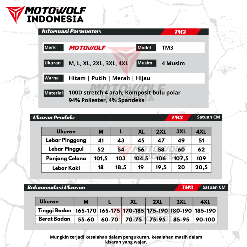 Motowolf Celana Riding Touring Motor Safety Protector CE2 Tahan Angin Dan Hangat Reflektif TM3