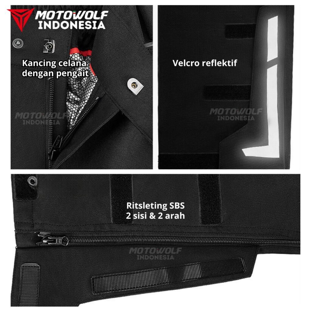 Two Way Zipper sampai bawah kaki mempermudah anda dalam melepas pasang sepatu saat istirahat riding, khusunya sepatu boots tinggi.