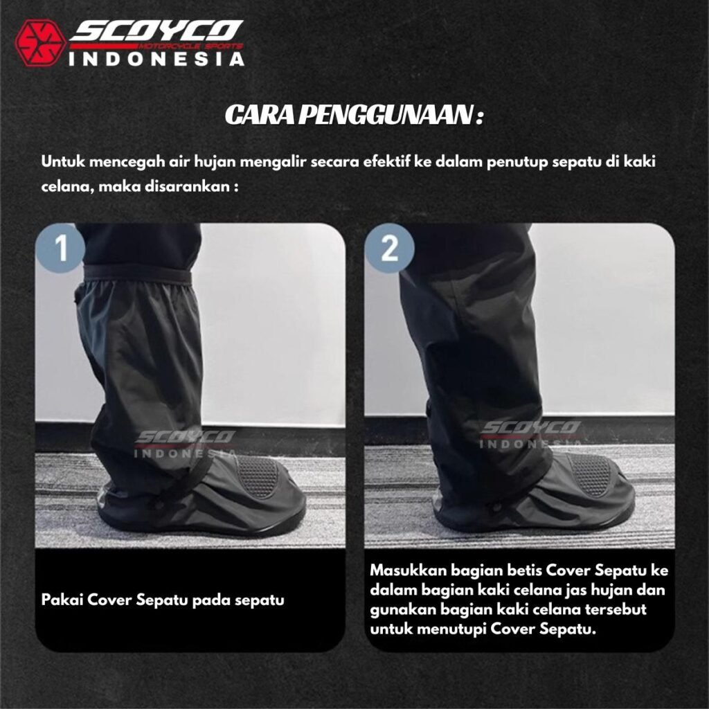 Cover sepatu motor ini memiliki desain yang universal, cocok digunakan di segala jenis model motor dan tahan hujan di daerah tropis dan dingin.
