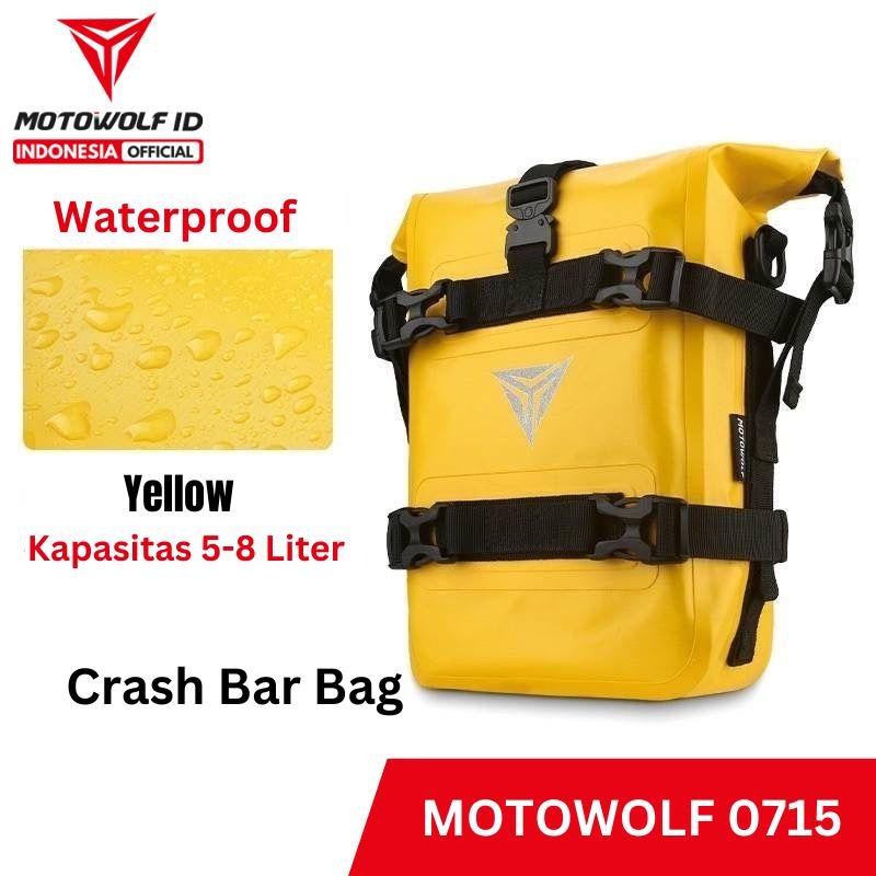 Crashbar bag ini dapat dipasang pada semua motor yang memiliki braket dengan ukuran sama atau lebih besar dari tas.