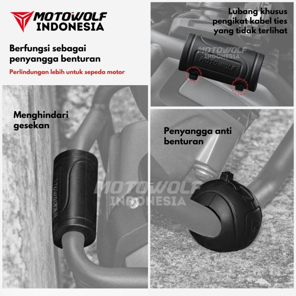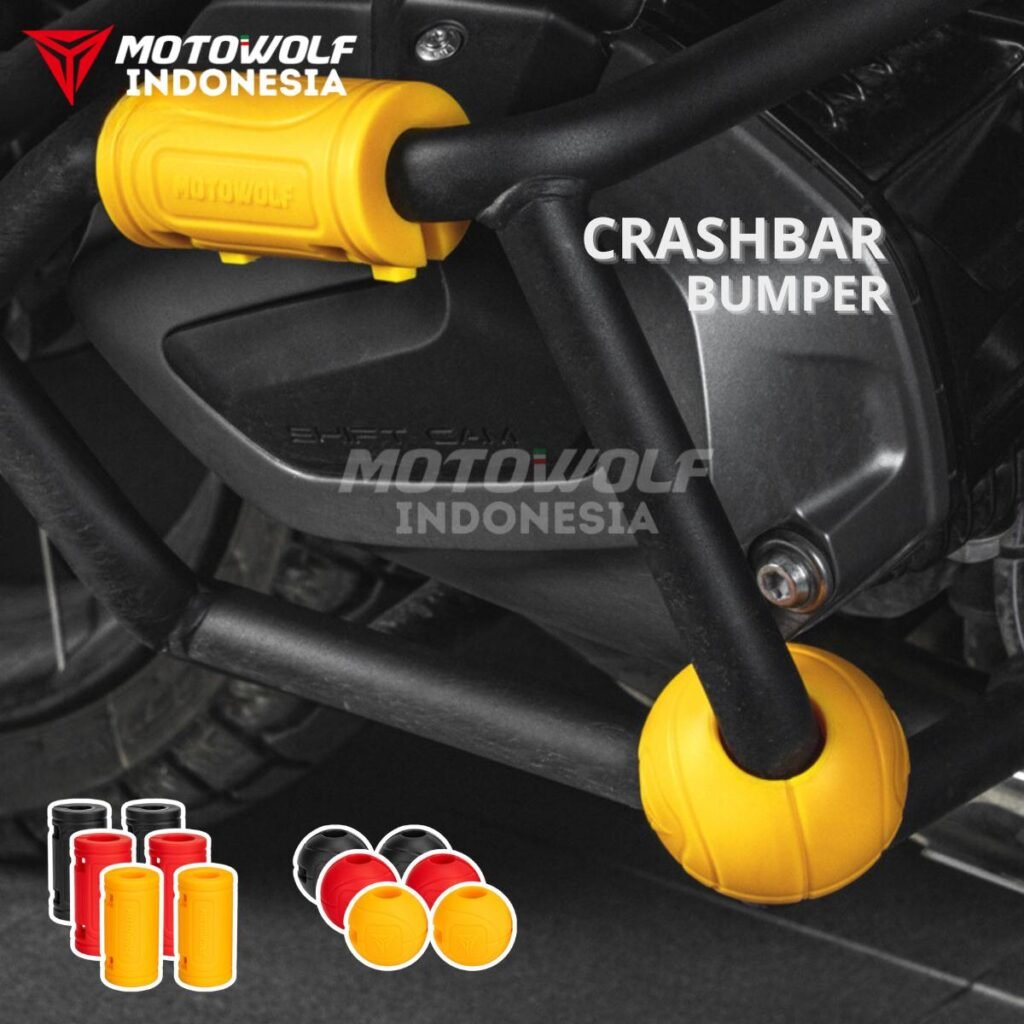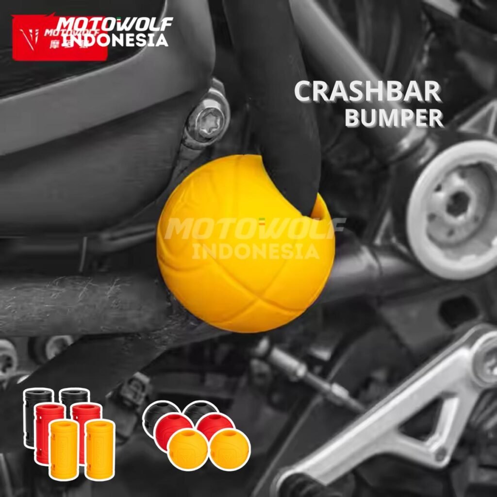 Bumber crashbar atau pelindung crashbar ini berfungsi untuk mengurangi efek benturan dan gesekan kepada crashbar saat motor terjatuh.