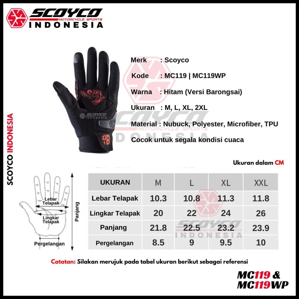 Sarung Tangan Breathable Touchscreen Scoyco MC119 & MC119WP.