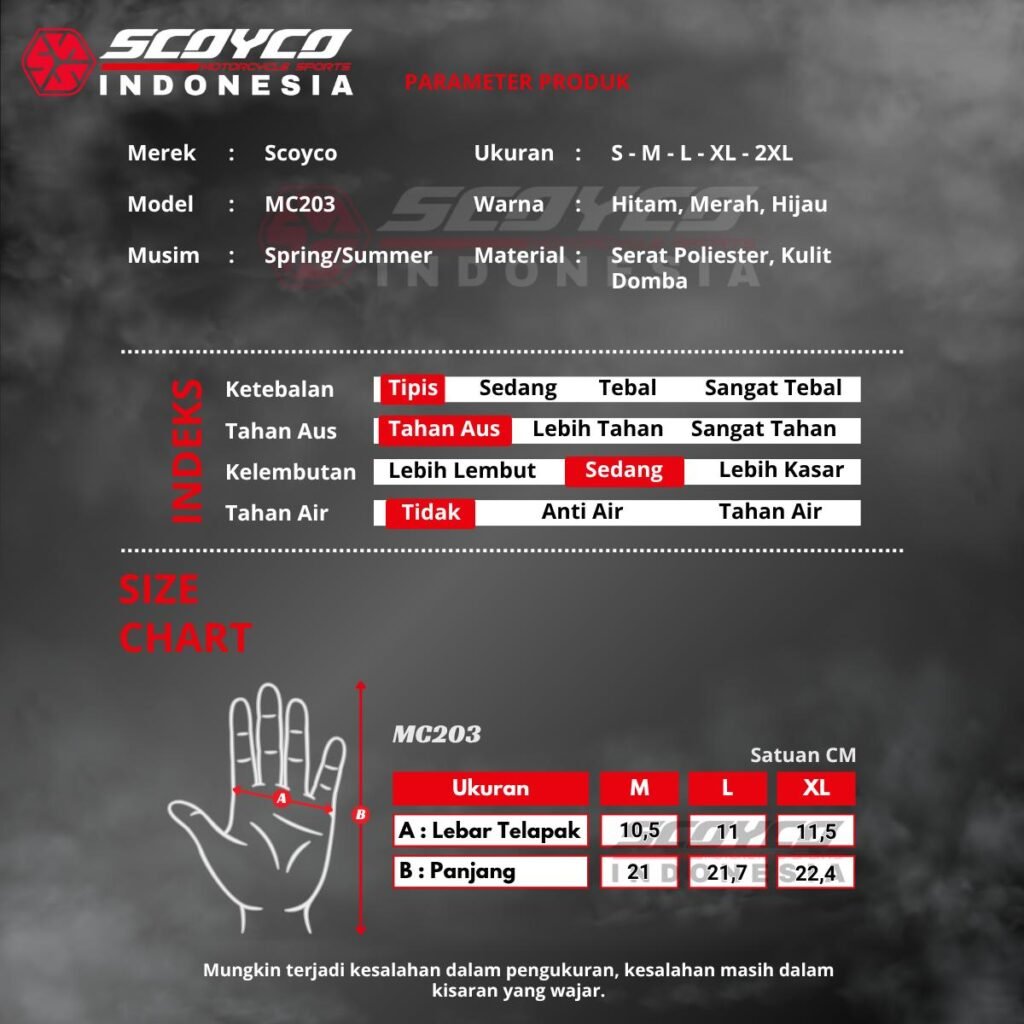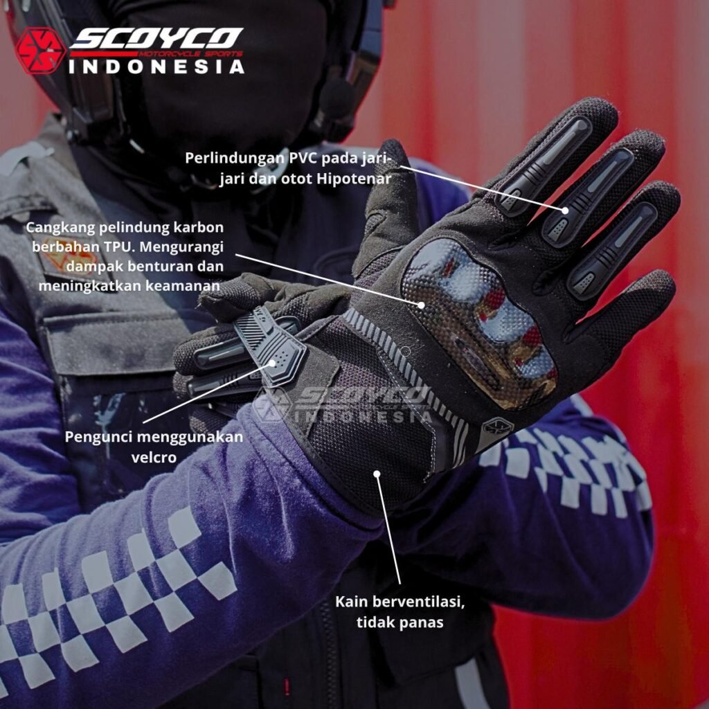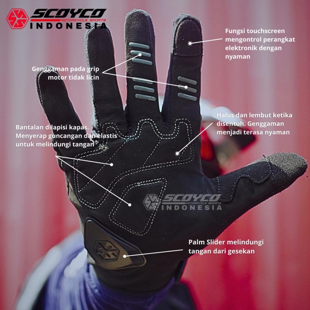 Sarung tangan ini cocok digunakan untuk harian, sunmori atau touring baik dengan motor matic, trail maupun sport.