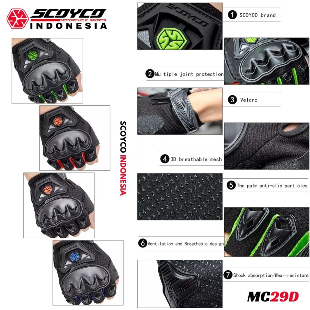 Sarung tangan Breathable Half Fingers Scoyco MC29D.
