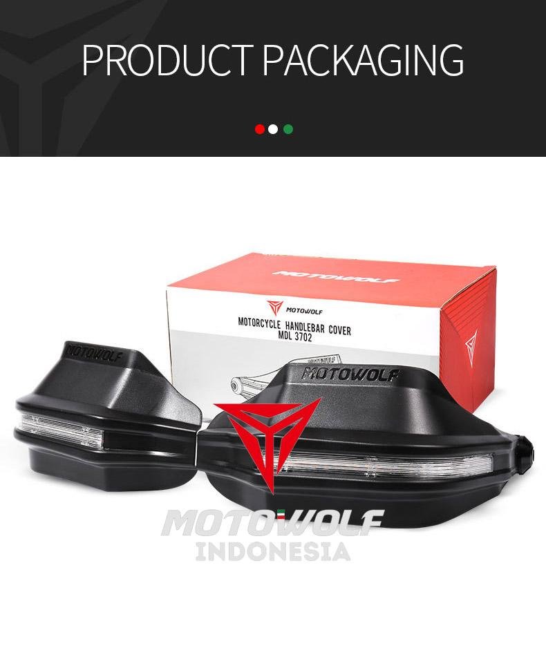 Handguard motowolf ini dapat di pasang pada hampir semua model motor, tergantung selera masing masing pemilik. Chasing handguard menggunakan bahan plastik PC yang kuat, ringan serta tahan lama.