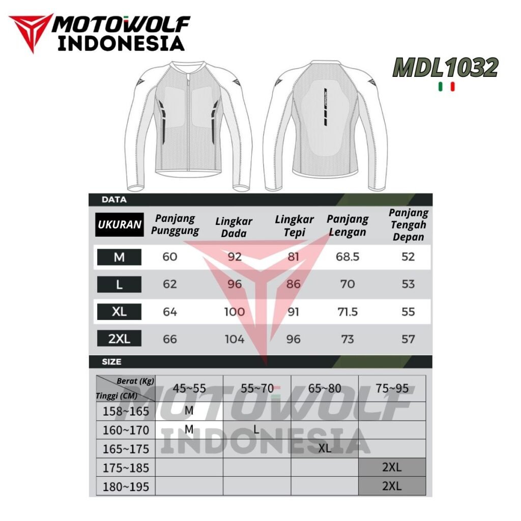 Dalam paket berupa : 1pcs Baju dan 7pcs Protector (2 bahu, 2 siku, 2 dada, 1 Tulang punggung).