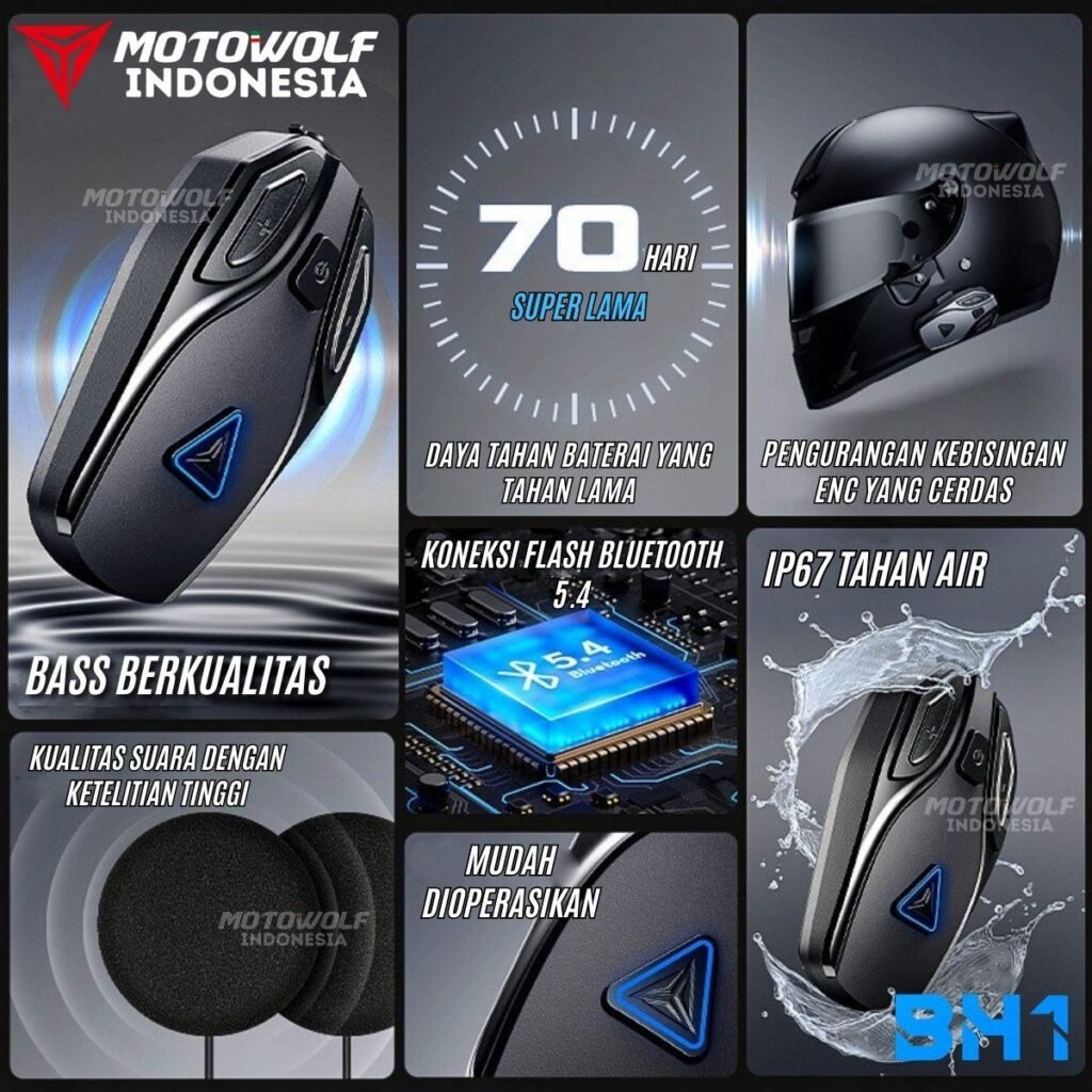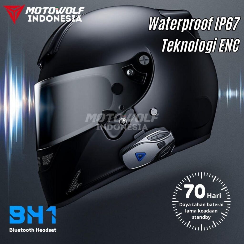 Bluetooth headset helmet ini sudah waterproof dengan ketahanan IP67 dan daya tahan battery awet hingga 70 hari kedepan.