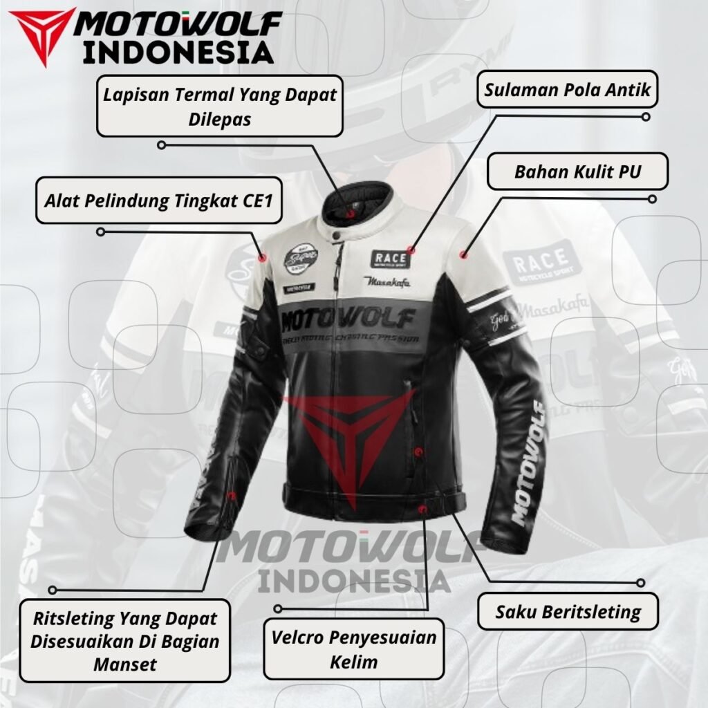 Jaket ini memiliki desain universal yang cocok dengan banyak model motor dan gaya berkendara.