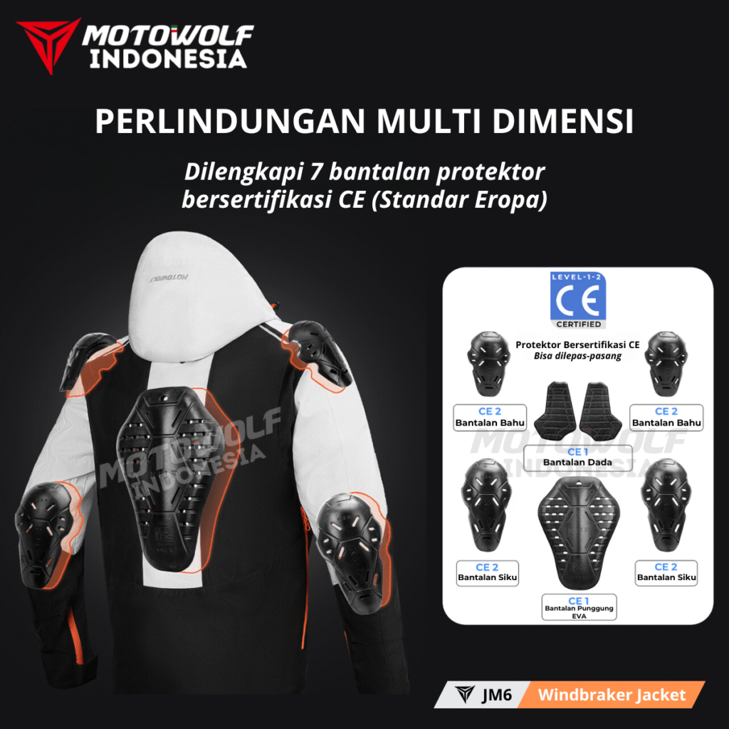 Jaket ini juga dilengkapi dengan 7 Protector berbahan EVA yang terkenal empuk, awet dan tahan lama.