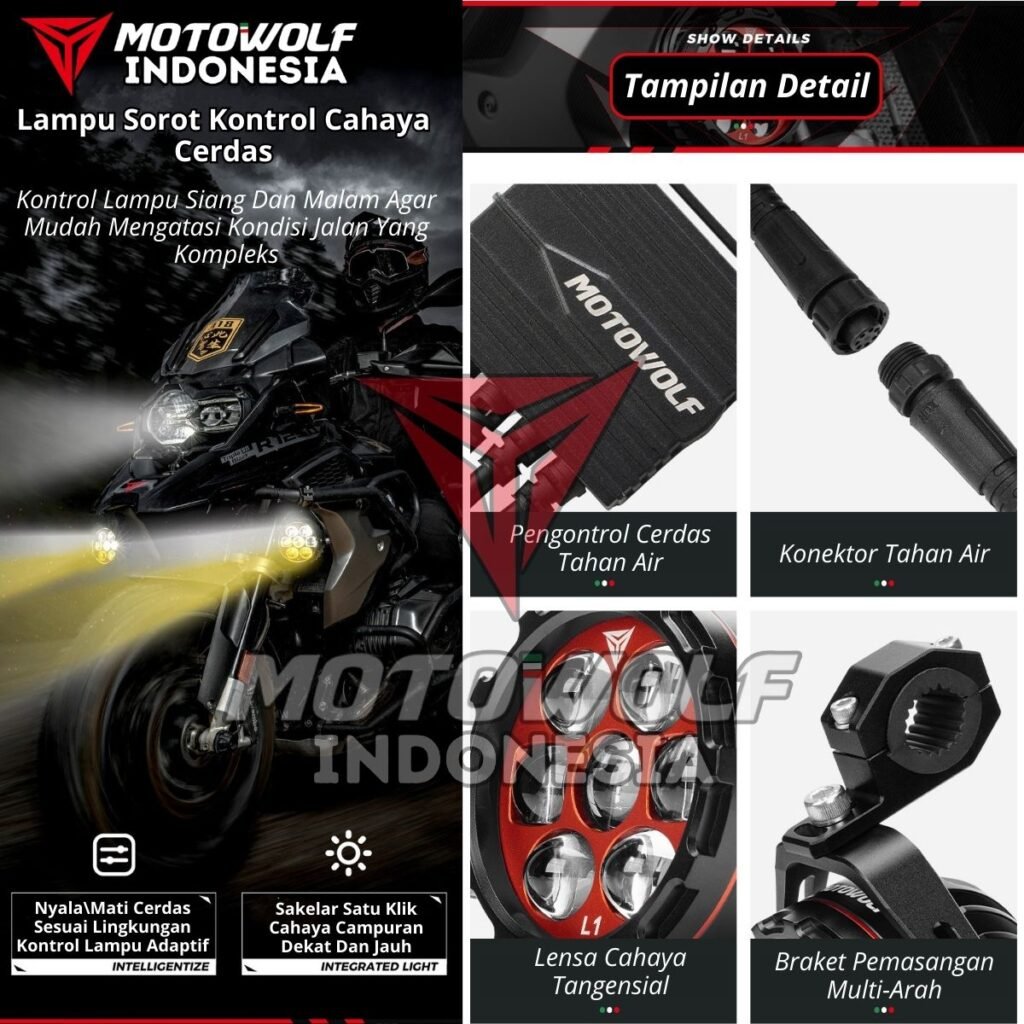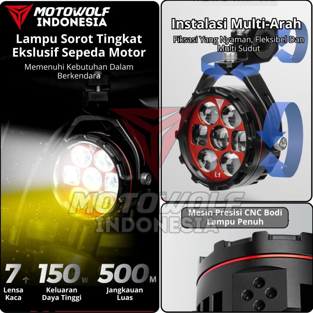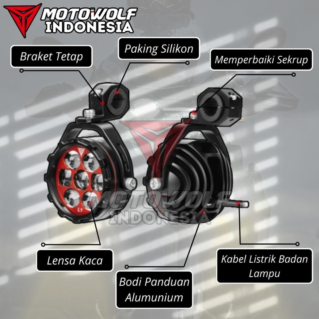 Lampu Sorot LED Spotlight 7 Lensa 2 Warna 6 Mode Motowolf L1 L1B.