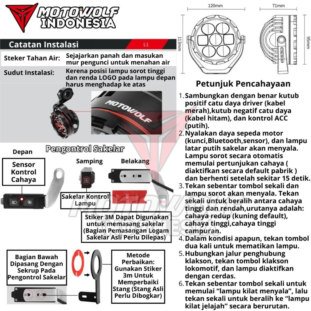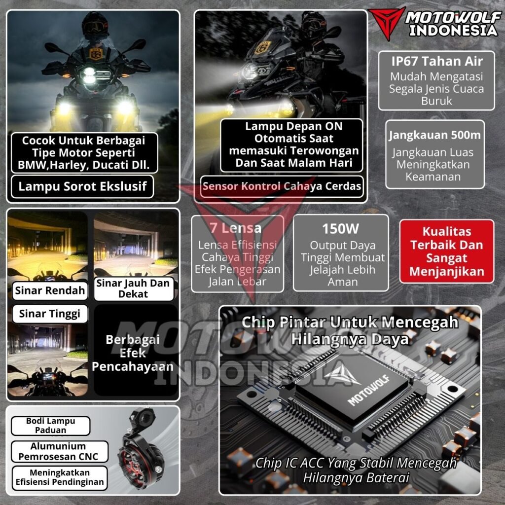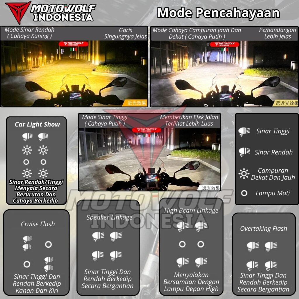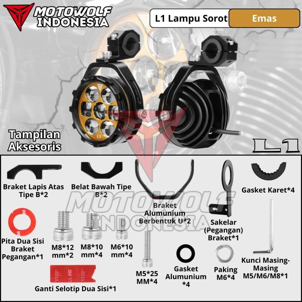 Lampu Sorot LED Spotlight 7 Lensa 2 Warna 6 Mode Motowolf L1 L1B.