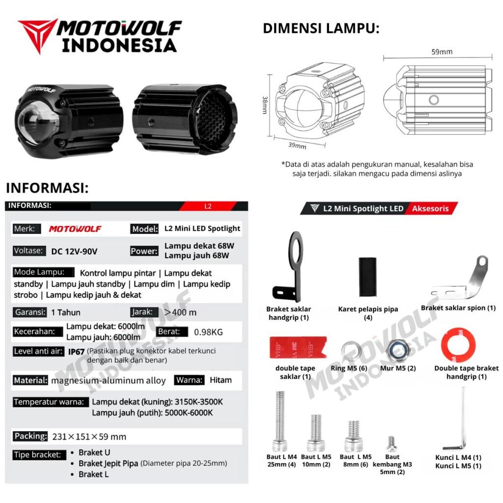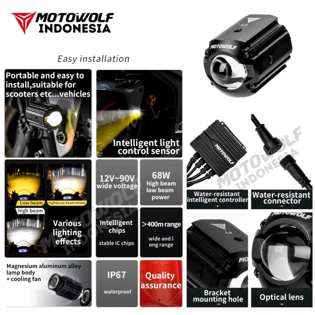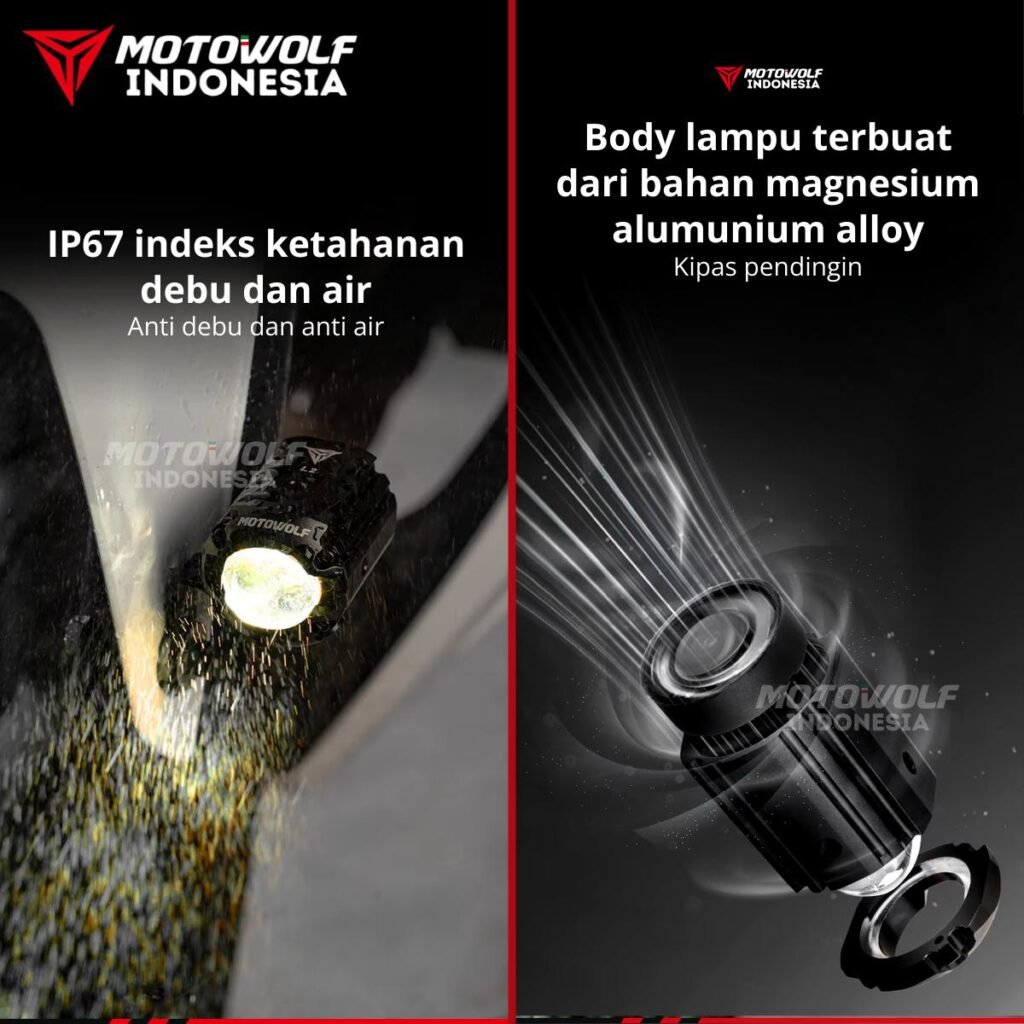 Menggunakan dua chip cree yang berkualitas standar internasional Motowolf yang dapat dinyalakan hingga 10000jam pemakaian.