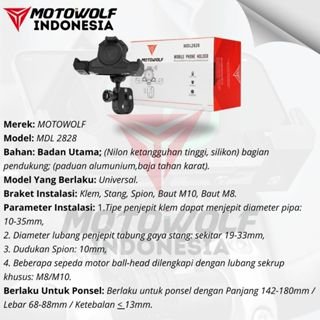 Phone Holder ini dapat di pasang pada semua sepeda motor, Motor listrik, mobil, ATV, ataupun truk.