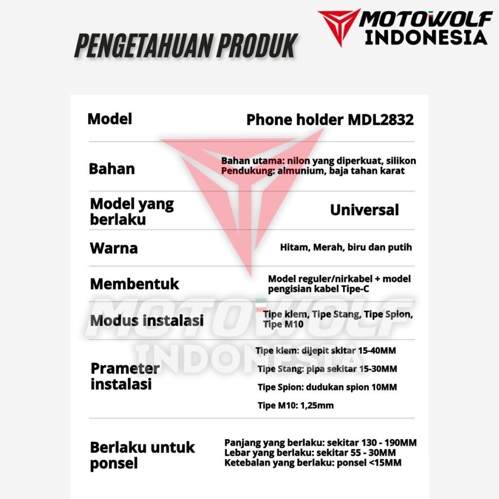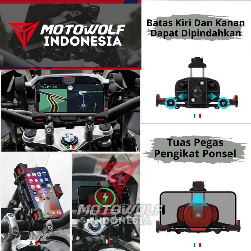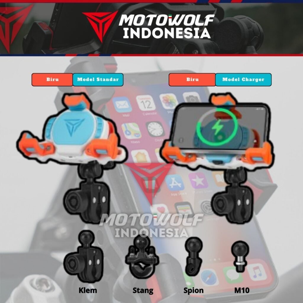 Fitur : Konektor Daya Tahan Air, Bantalan Silikon, Stabilizer, Anti Theft, 360°, Pengisian Daya Tipe C, Dapat Di Perluas Ke Samping, Pegas Elastis Atas, Dapat Mengisi Daya Dua Perangkat Secara Bersama.