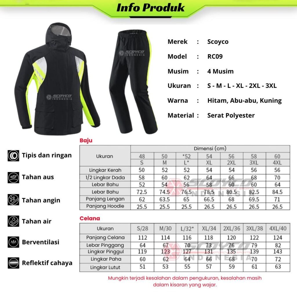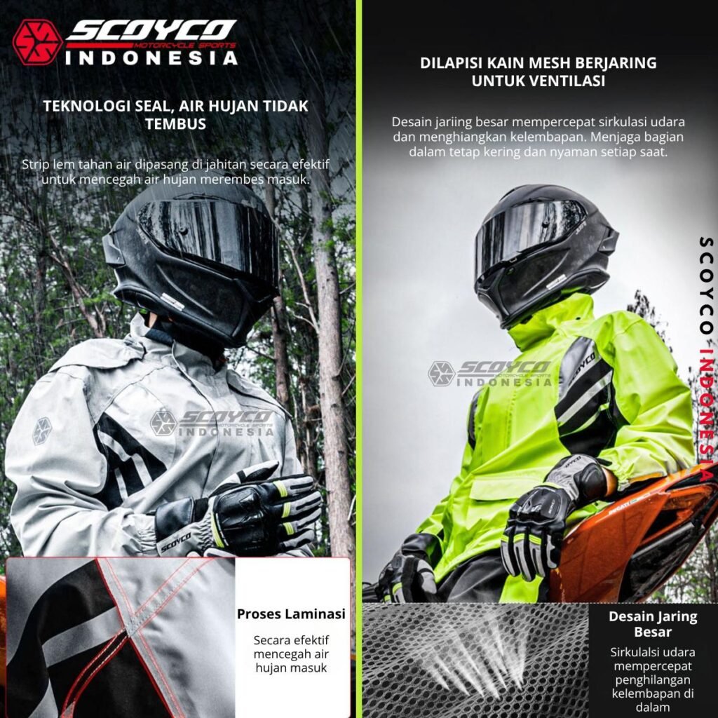 Jas Hujan Double Furing Mesh Reflektif Scoyco RC09.