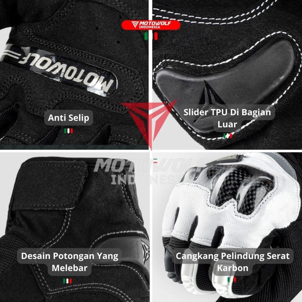 Sarung tangan motowolf, selain sebagai salah satu untuk keselamatan jalan. Sarung tangan juga menjadi mode trendi berkendara.