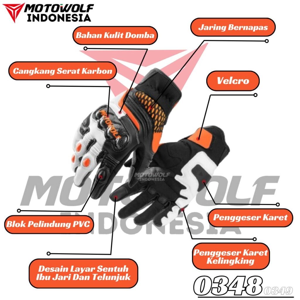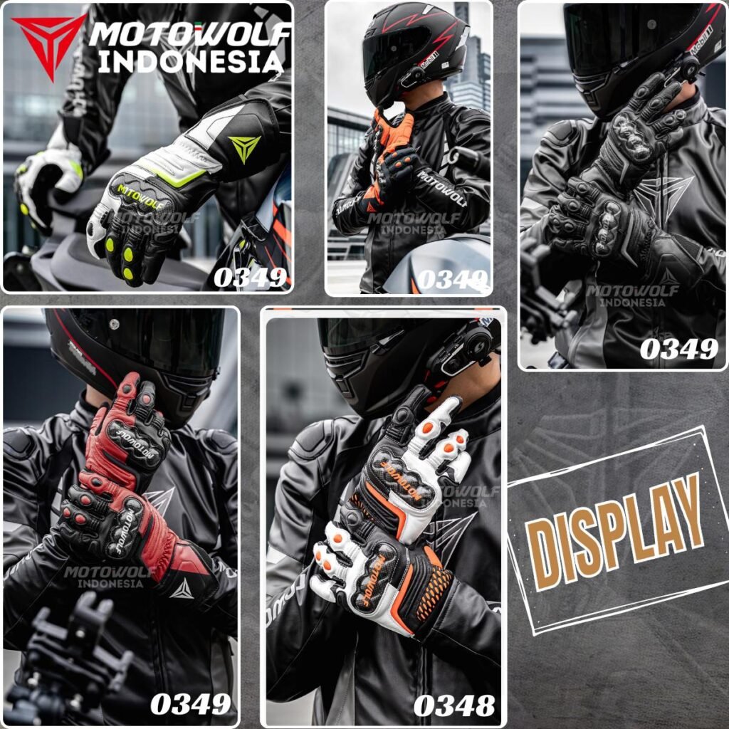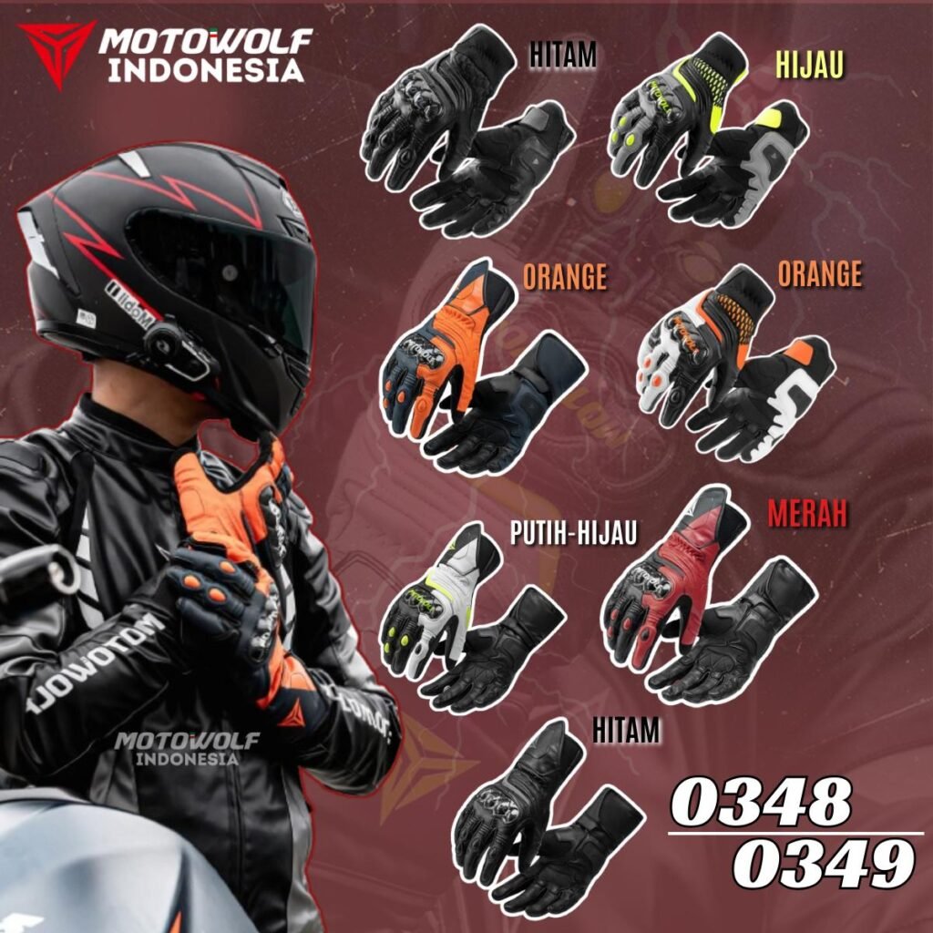 Sarung Tangan Motor Kulit Riding Motowolf Protector Anti-Slip Model 0348 0349.