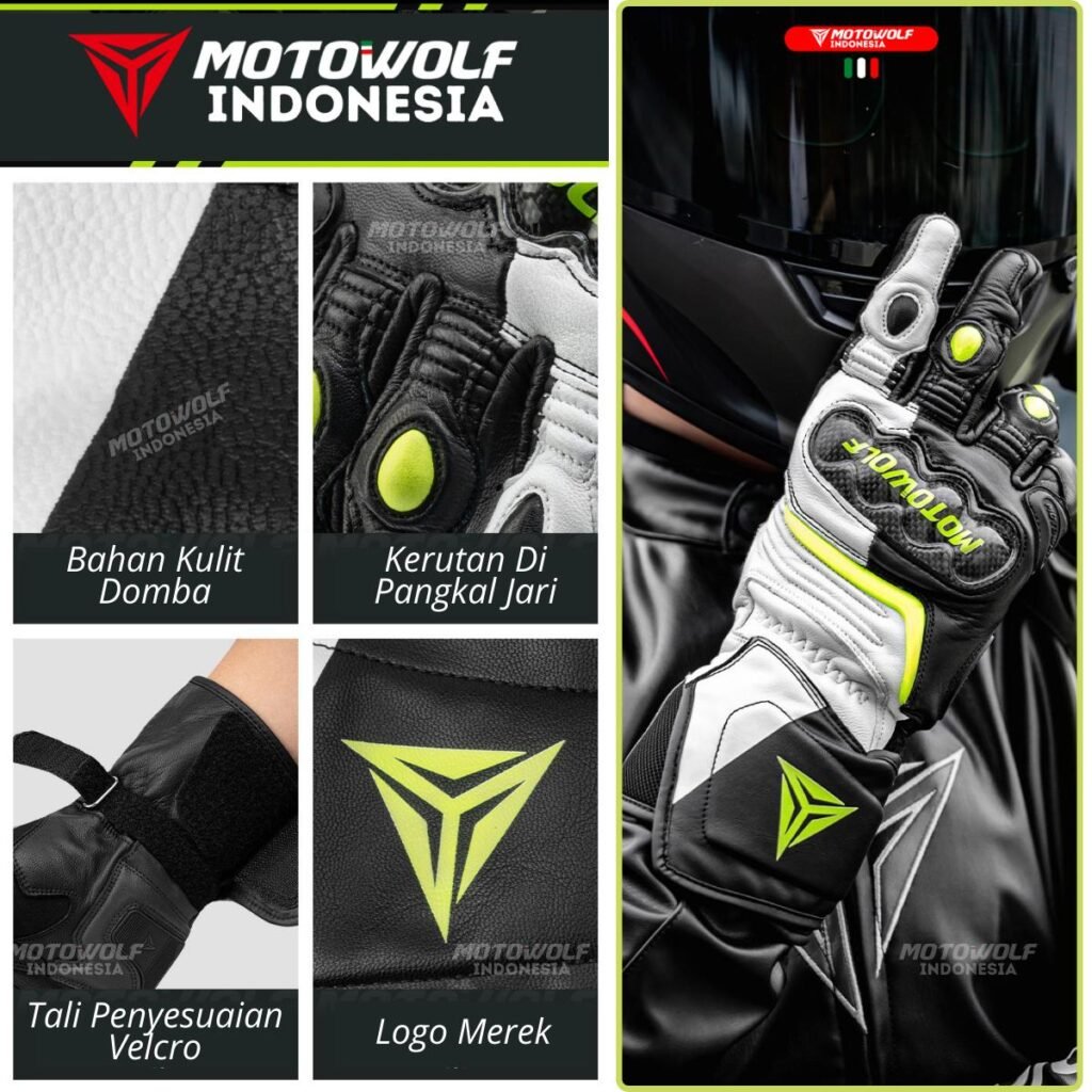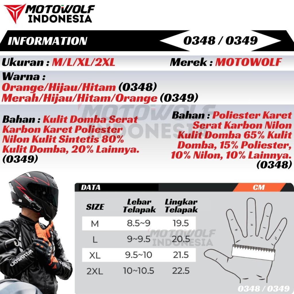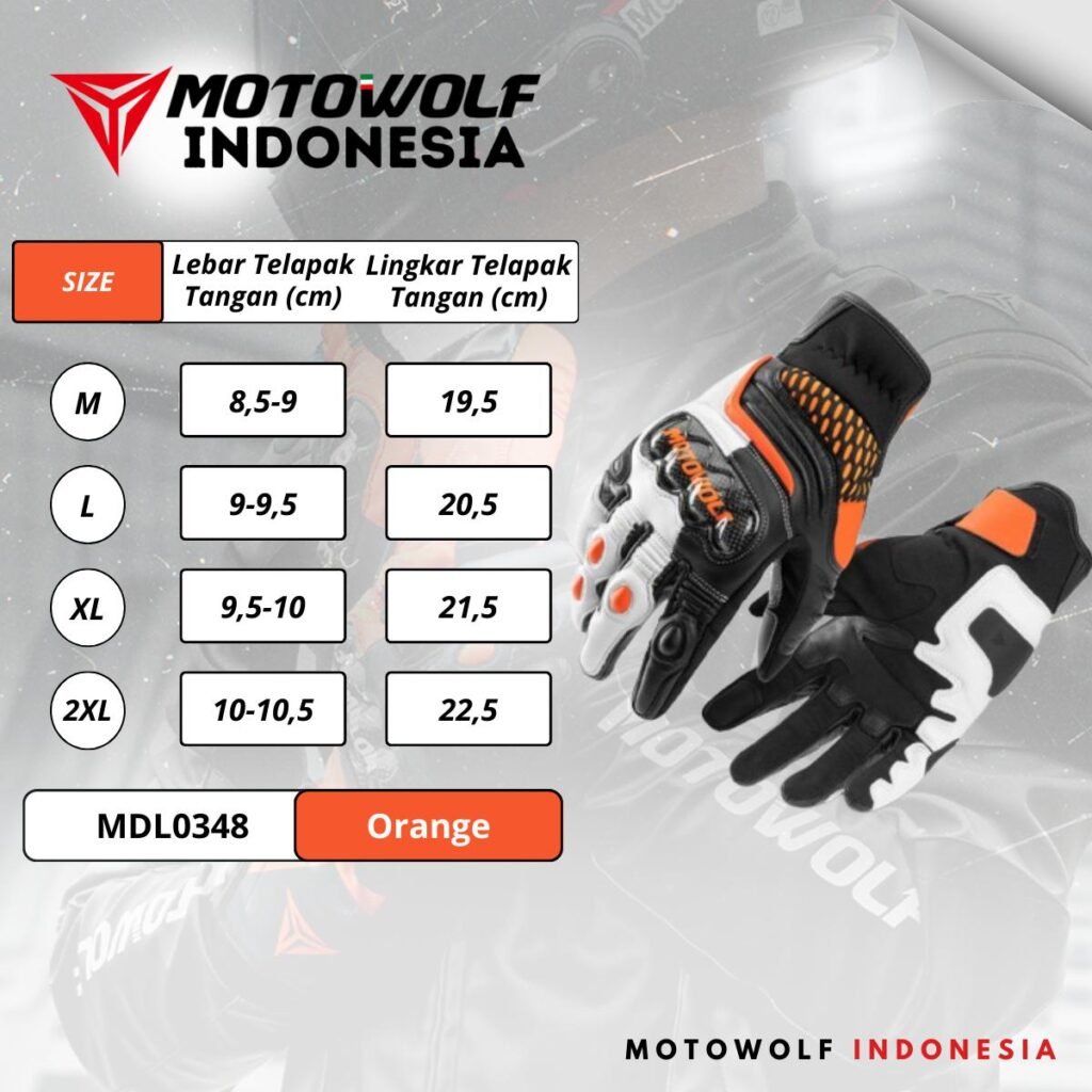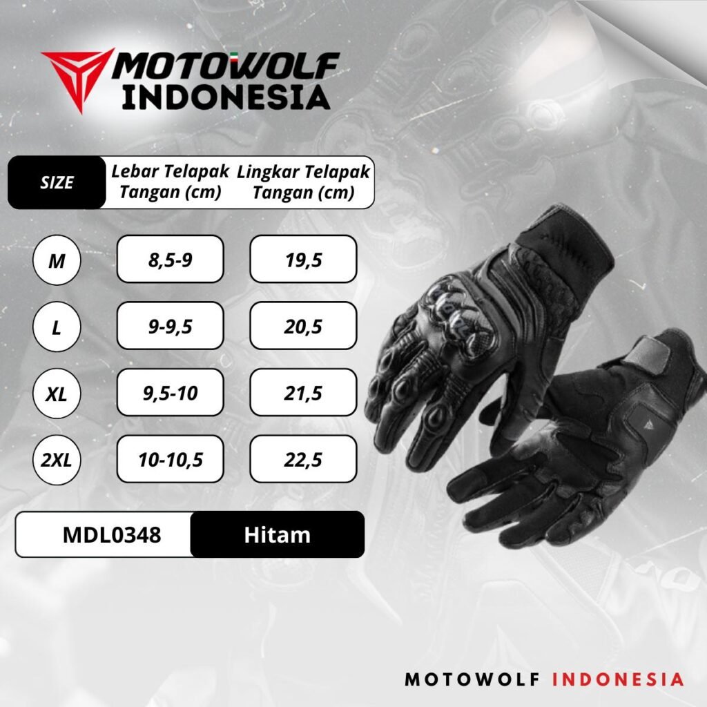 Sarung Tangan Motor Kulit Riding Motowolf Protector Anti-Slip Model 0348 0349.