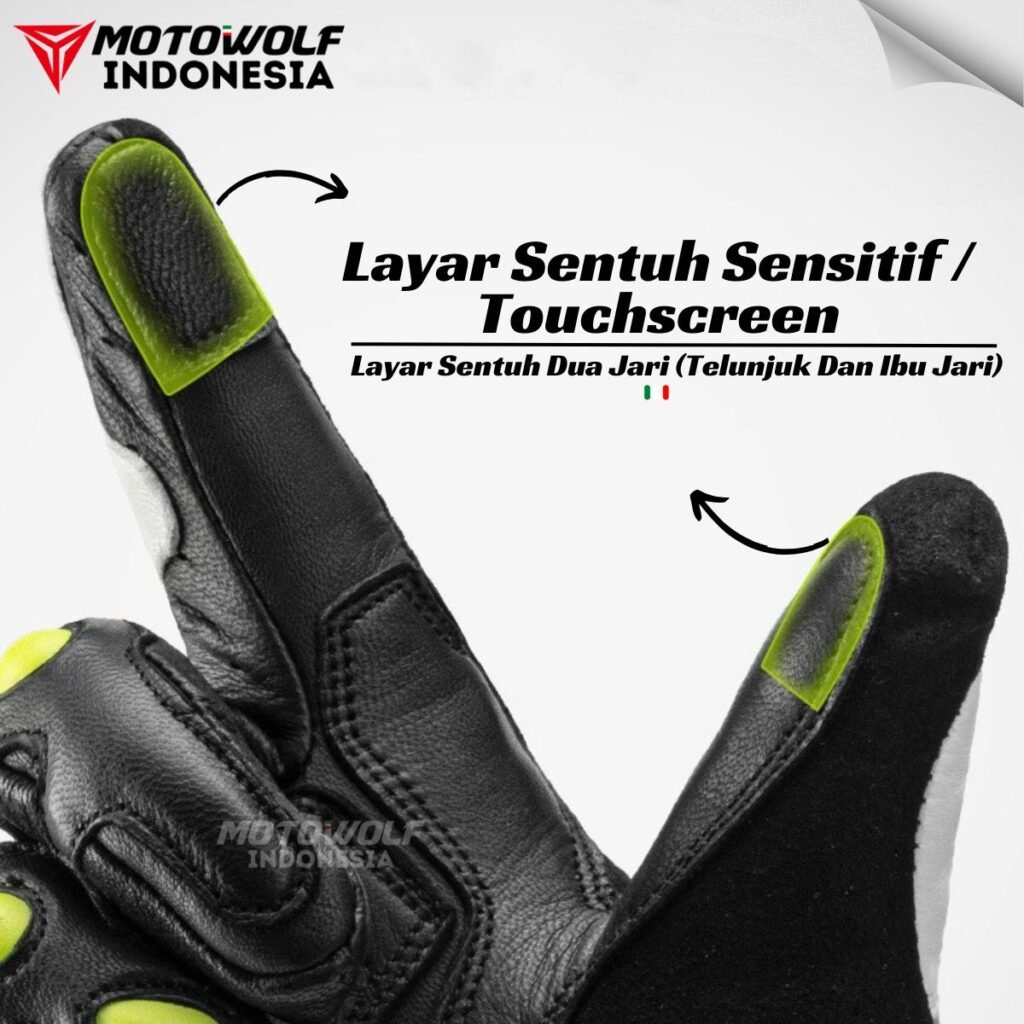 Sarung tangan ini juga sudah Touchscreen pada bagian bagian ibu jari dan telunjuk.