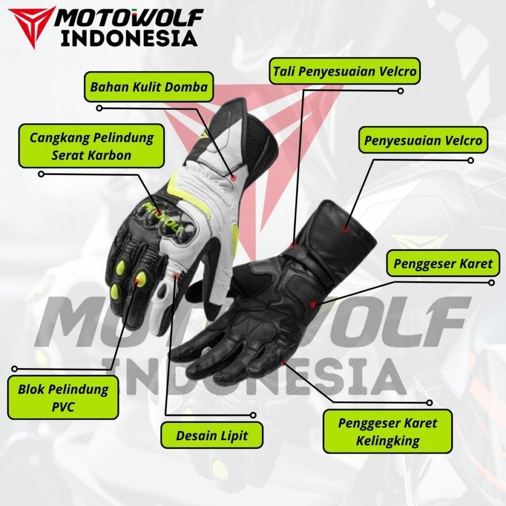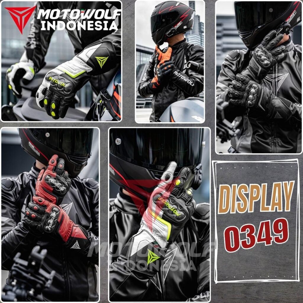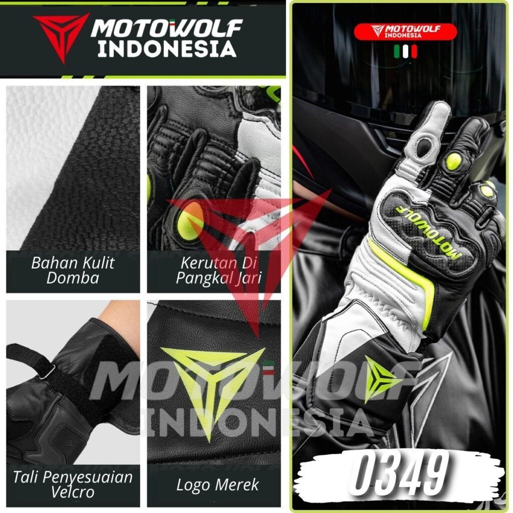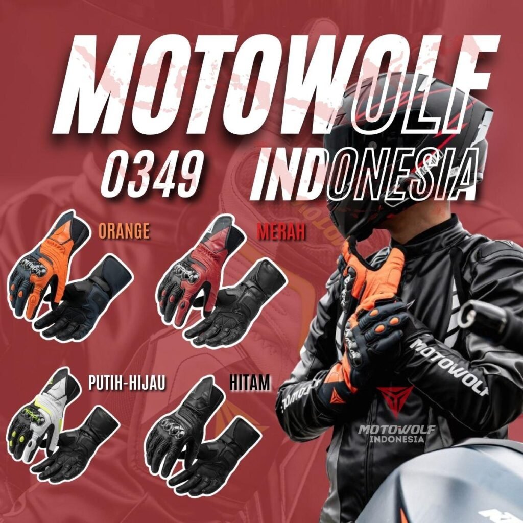 Sarung Tangan Motor Kulit Riding Motowolf Protector Anti-Slip Anti Angin Model 0349 .
