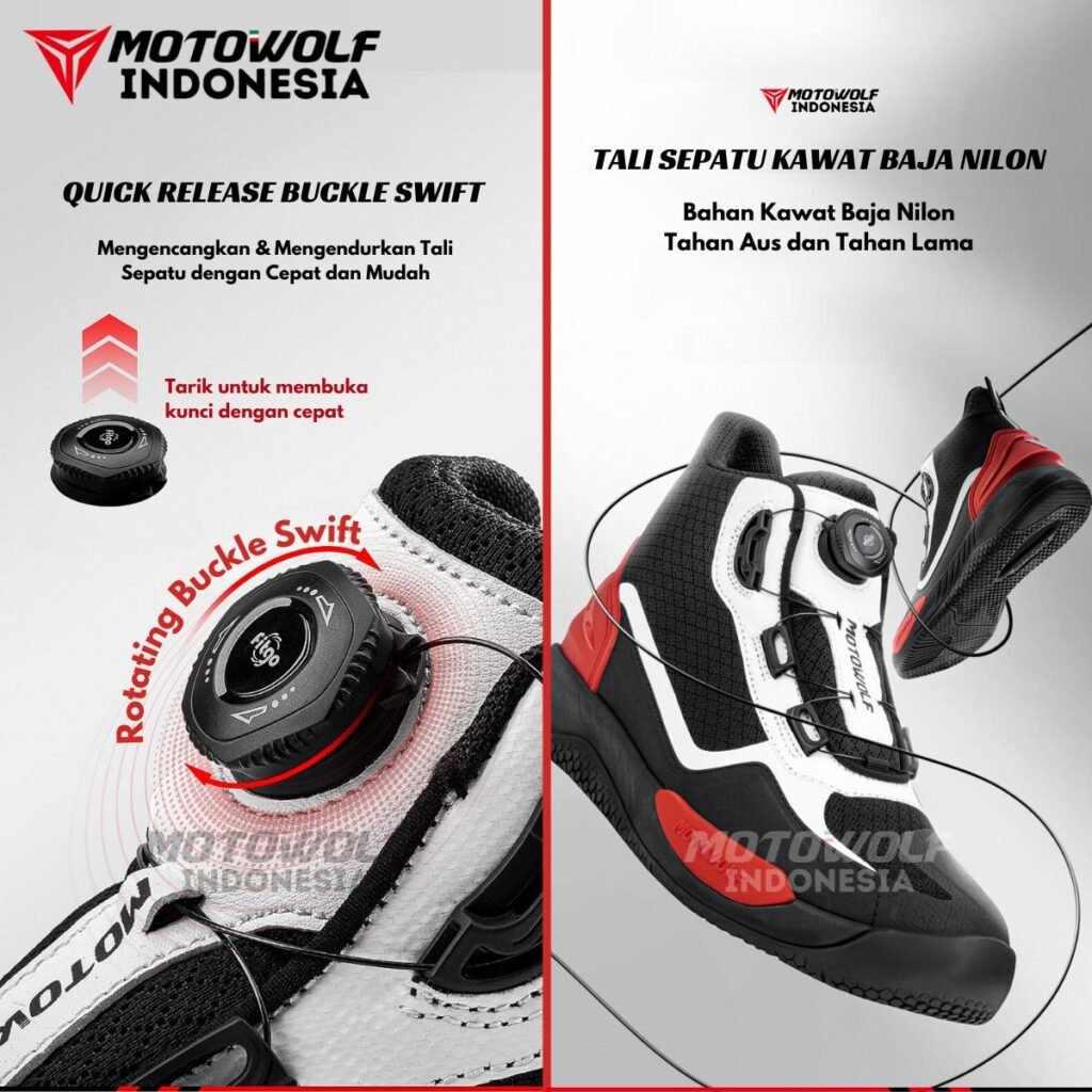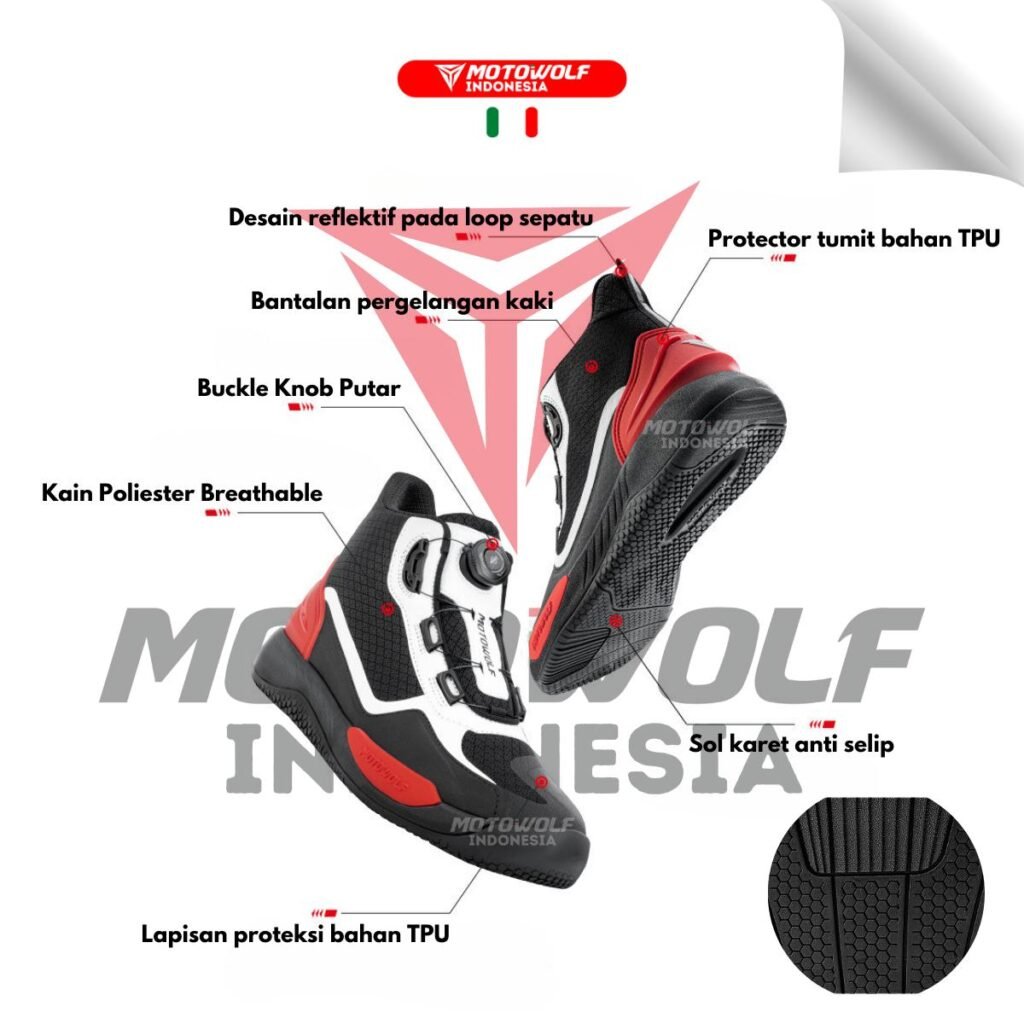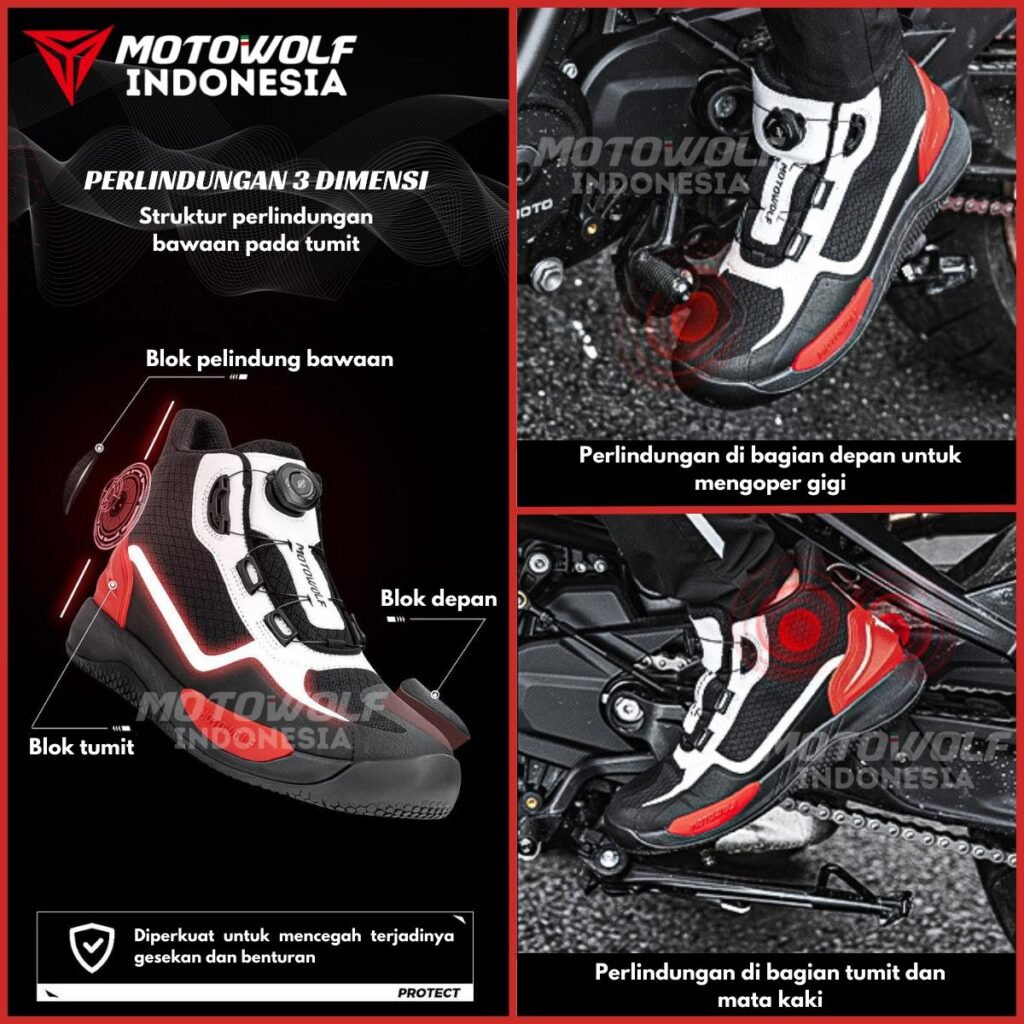 Sepatu Riding yang trendi namun memiliki fungsi sebagai pelindung kaki karena memiliki beberapa perlindungan yang cocok untuk para pengendara motor ketika dipakai touring, sunmori bahkan untuk harian.