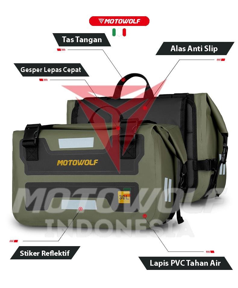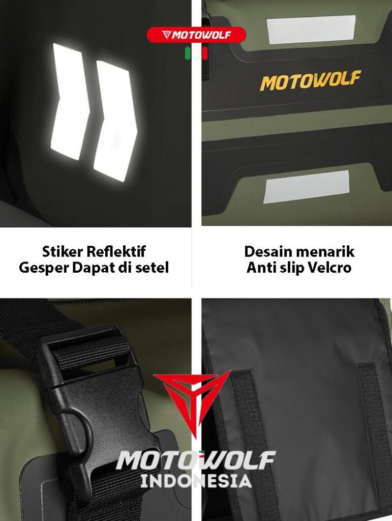 Bahan kualitas premium yang Tebal, Anti Air, Anti Debu dan berkualitas serta brand motowolf yang berkelas internasional.