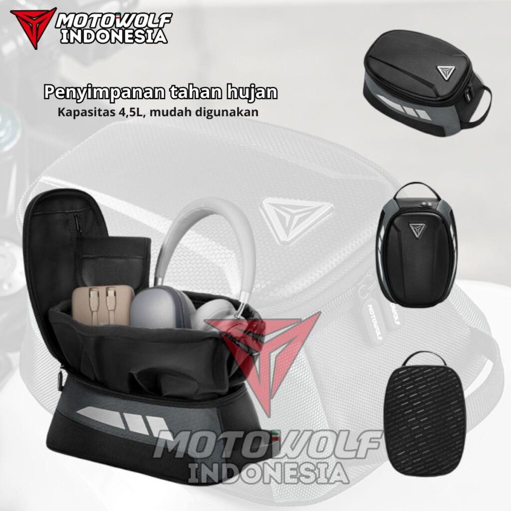 Tank Bag Motor Multifungsi Motowolf dengan Model MB1 Magnetic Waterproof.