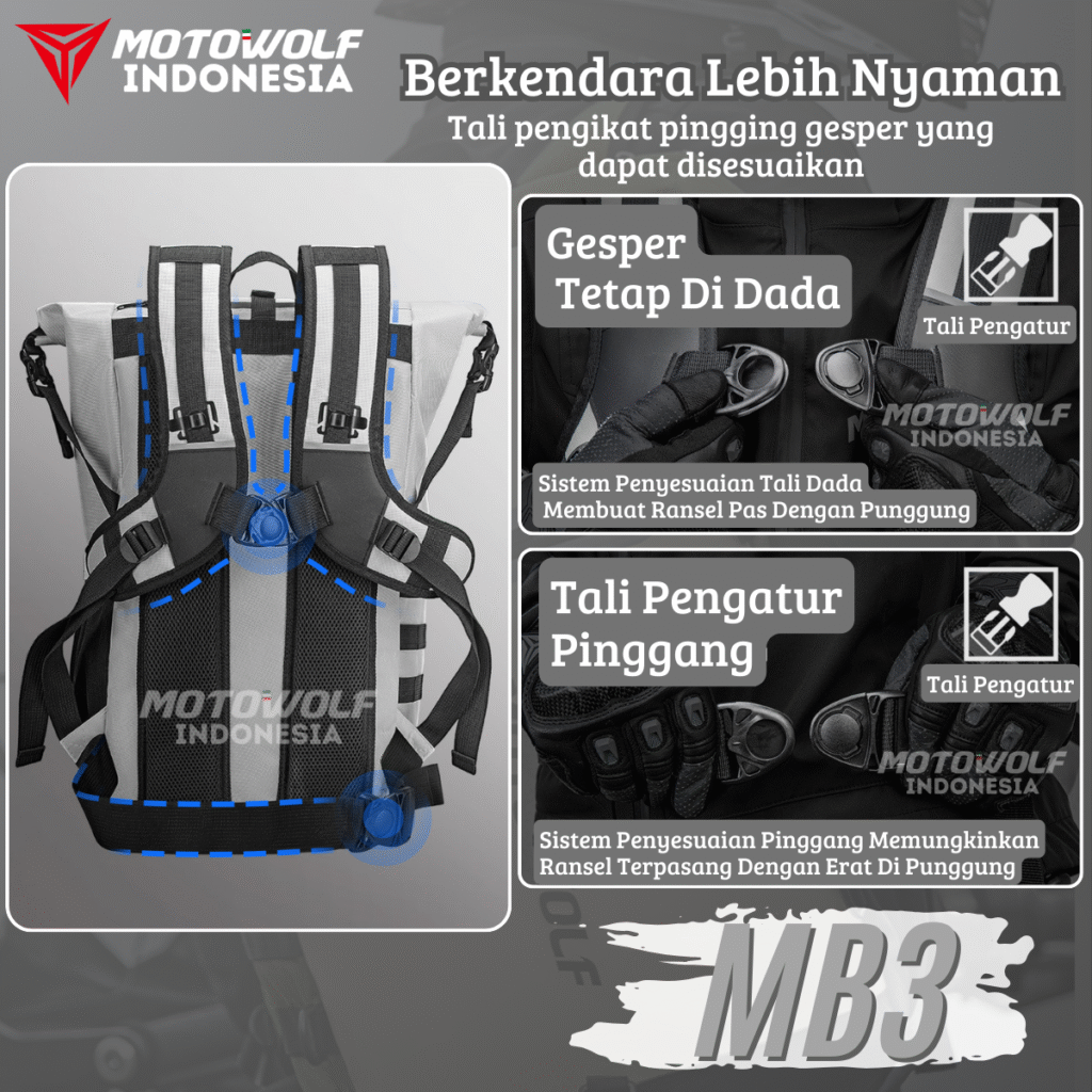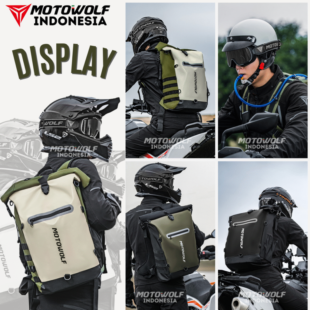 Tas motor backpack ini cocok di gunakan untuk anda yang ingin membawa barang dengan cara digendong ataupun diikat pada motor tanpa perlu braket permanen.