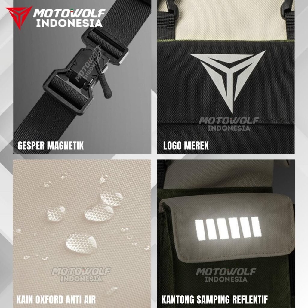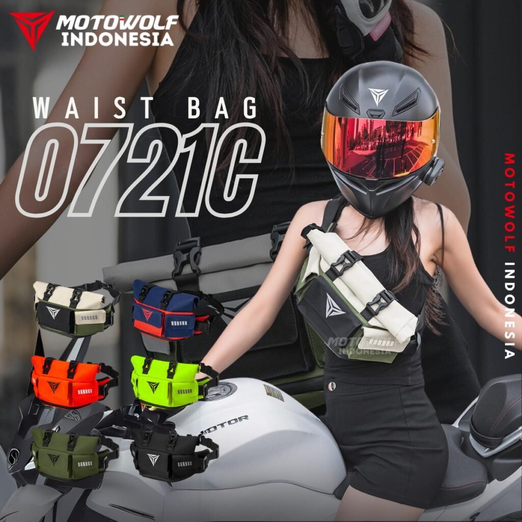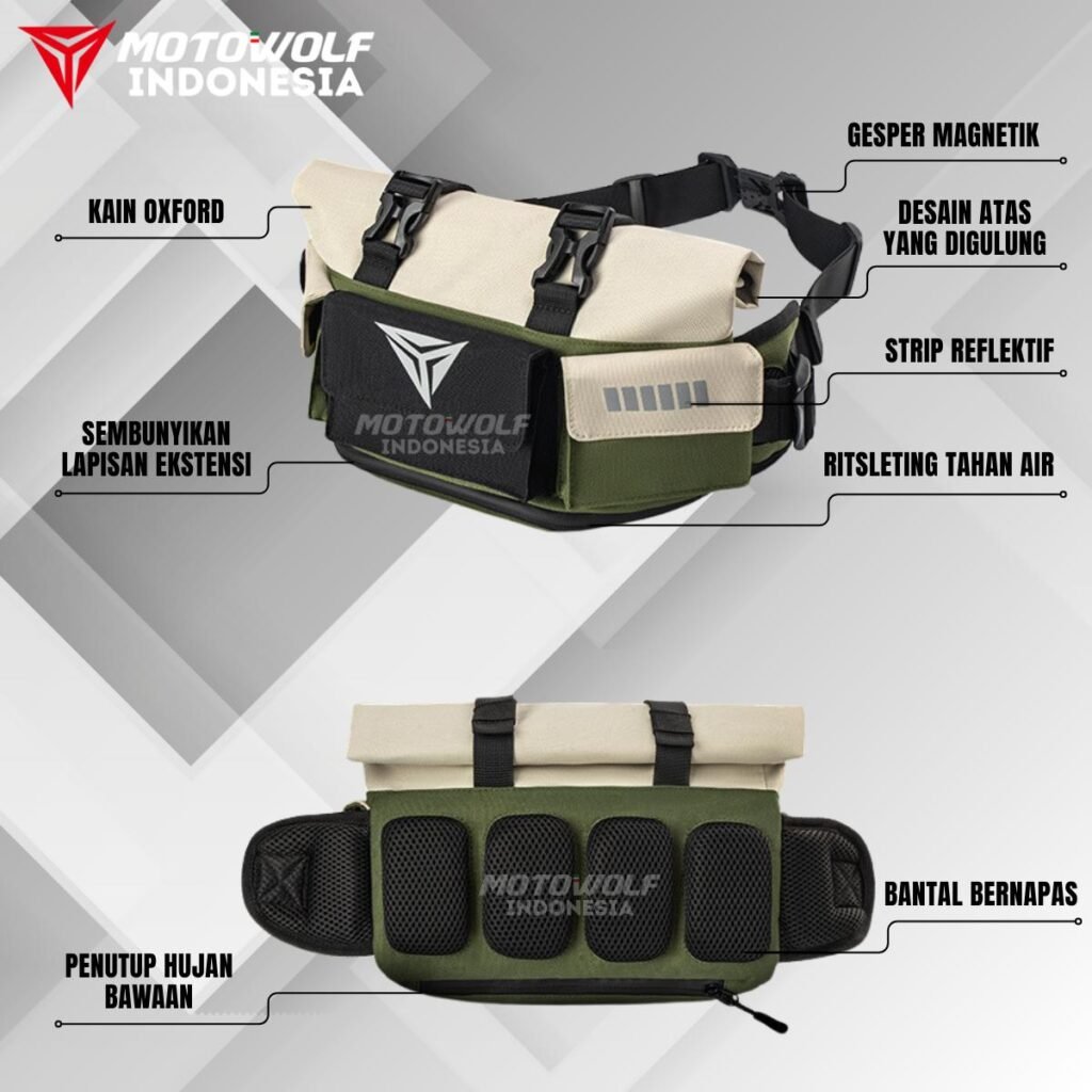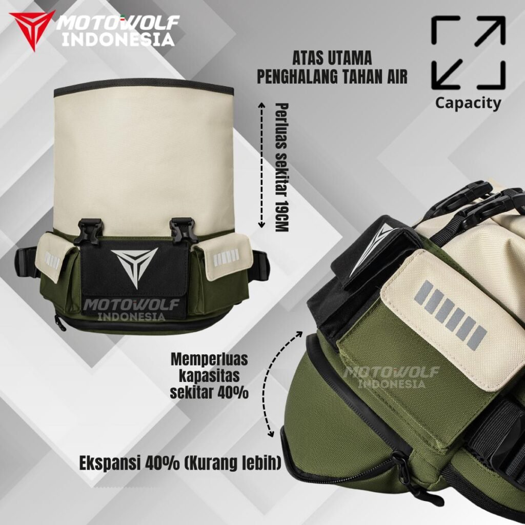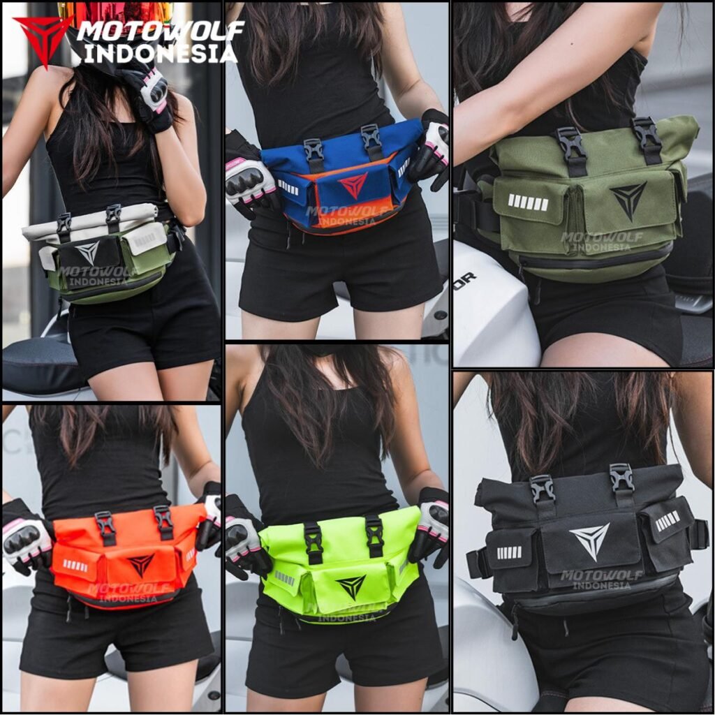 Tas pinggang motor Motowolf anti air, dapat ditambah kapasitasnya dan multifungsi.